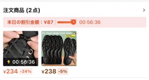 私は234円の靴紐と238円のインソールをカートに入れました。