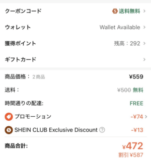 SHEIN CLUBからもらった送料無料クーポンを実際に使ってみました。